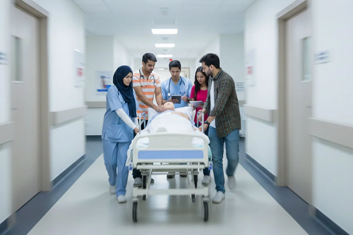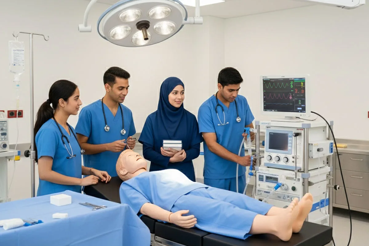 A practical session on advanced trauma life support techniques led by United Hospital senior surgeons.